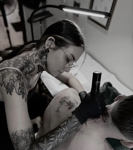 Célia a débuté son parcours dans le tatouage en 2019, à Annecy, après avoir suivi une formation initiale en arts plastiques.